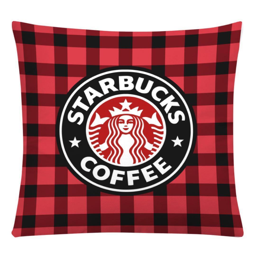 ・★大人気★スタバ・クッション・座布団カバー★チェック柄レッド【新品、未使用】