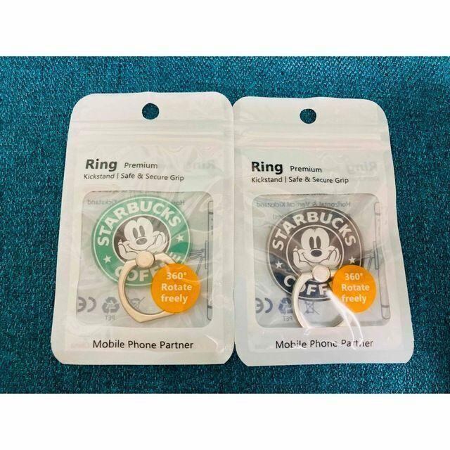 ✨大人気✨ミッキー・スマホリング✨グリーン/ブラック 2点セット